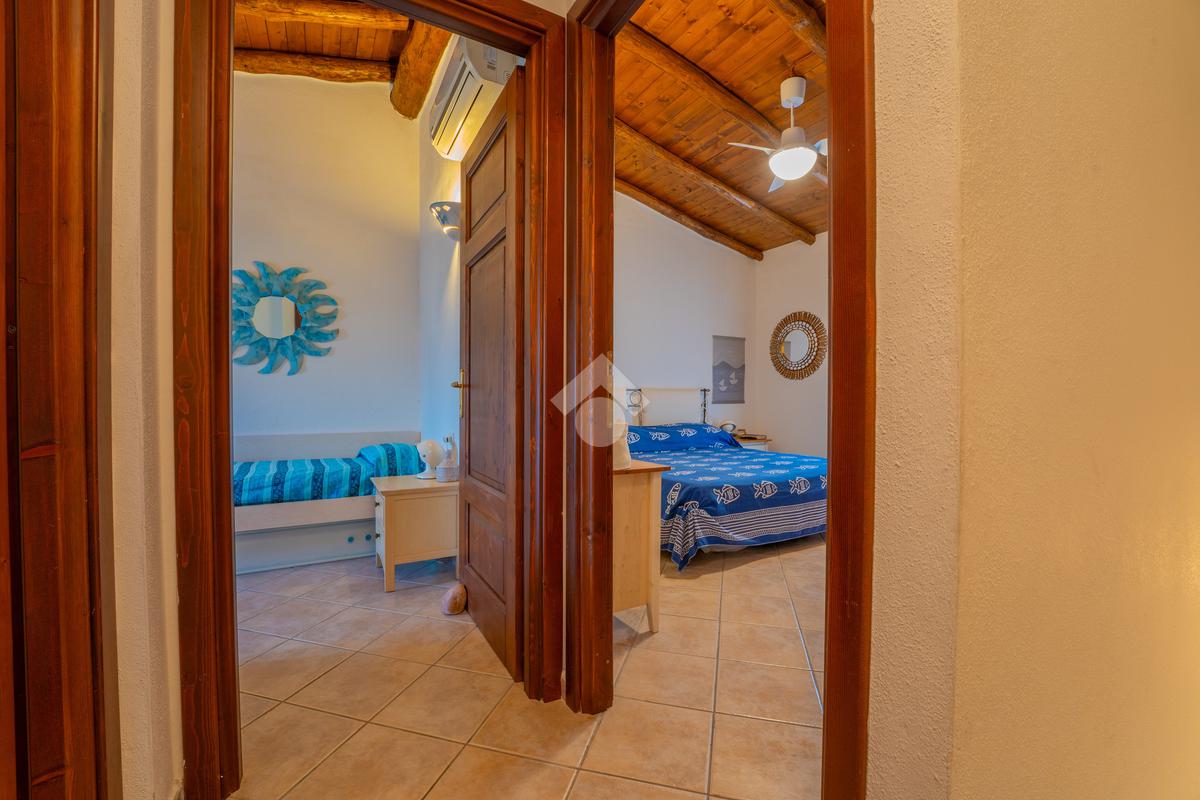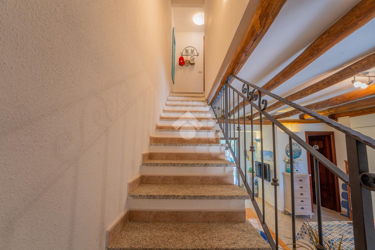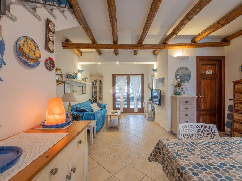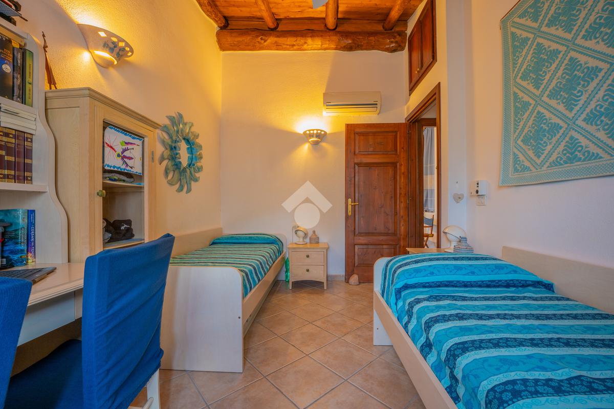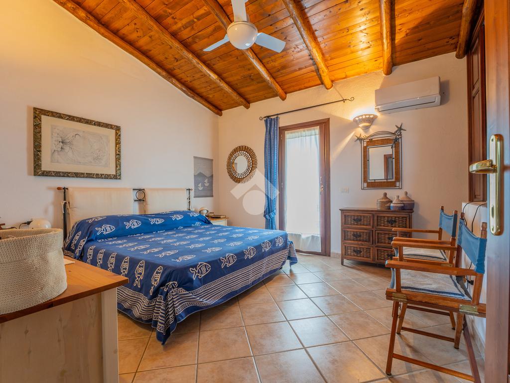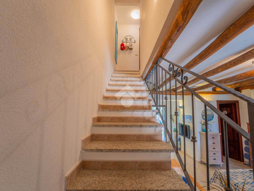 Una scala interna conduce alla zona notte, composta da una spaziosa camera matrimoniale con terrazzo privato e vista mare, dove sono presenti delle nicchie e un armadio a muro, una seconda camera, che grazie alle sue metrature permette l’utilizzo di due lettini singoli, e a un secondo bagno finestrato con doccia anche esso completo di tutti i servizi.