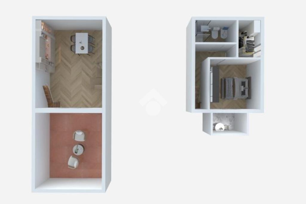 Questa villetta è sviluppata su due livelli: piano terra e primo piano.
