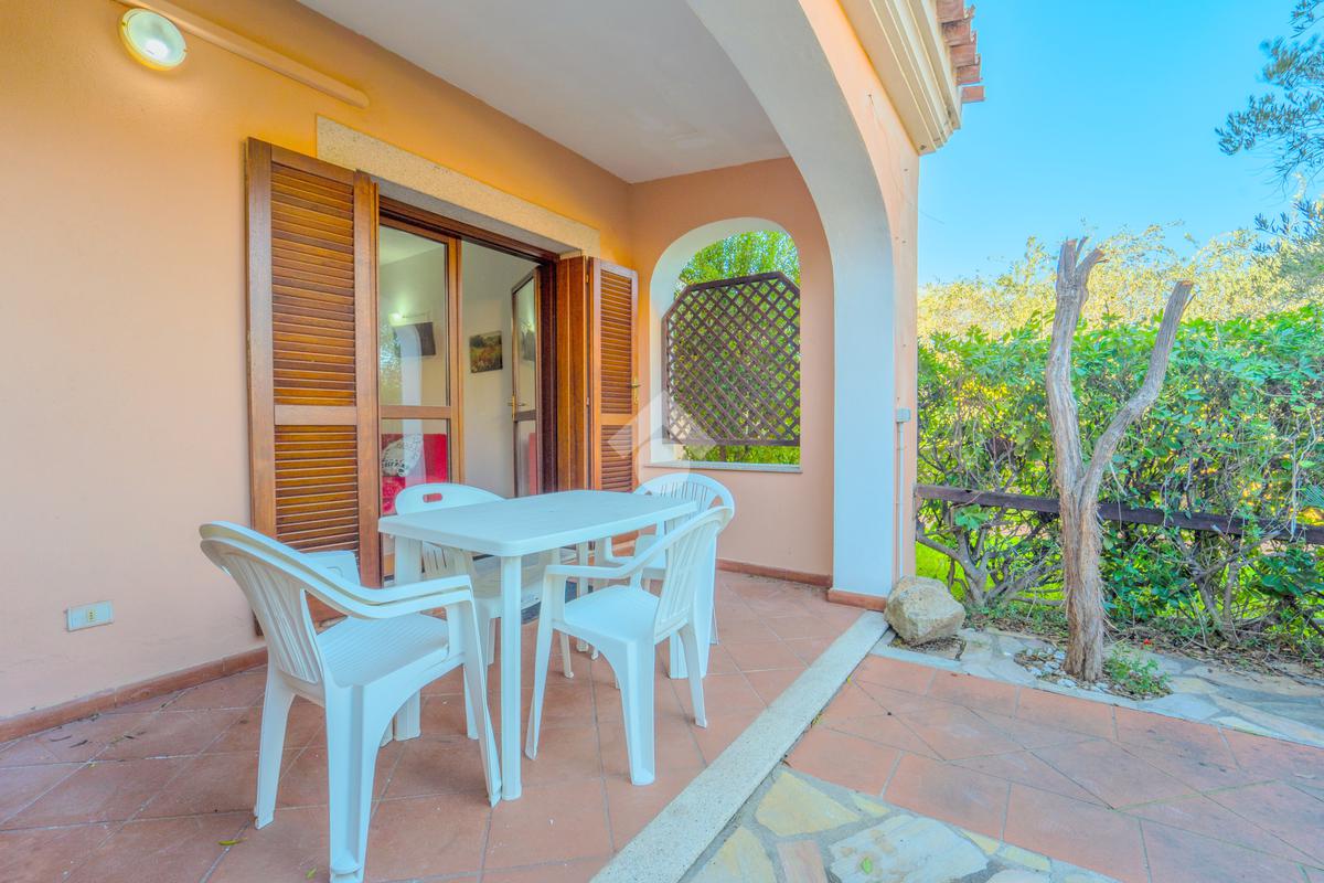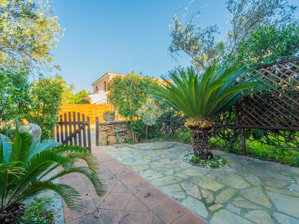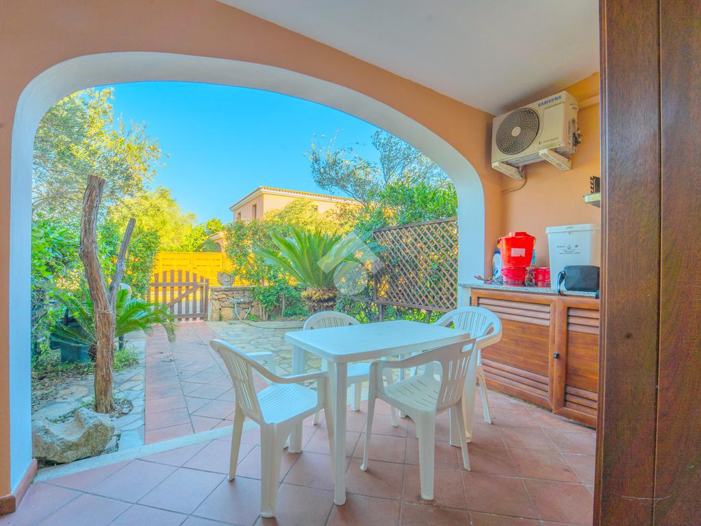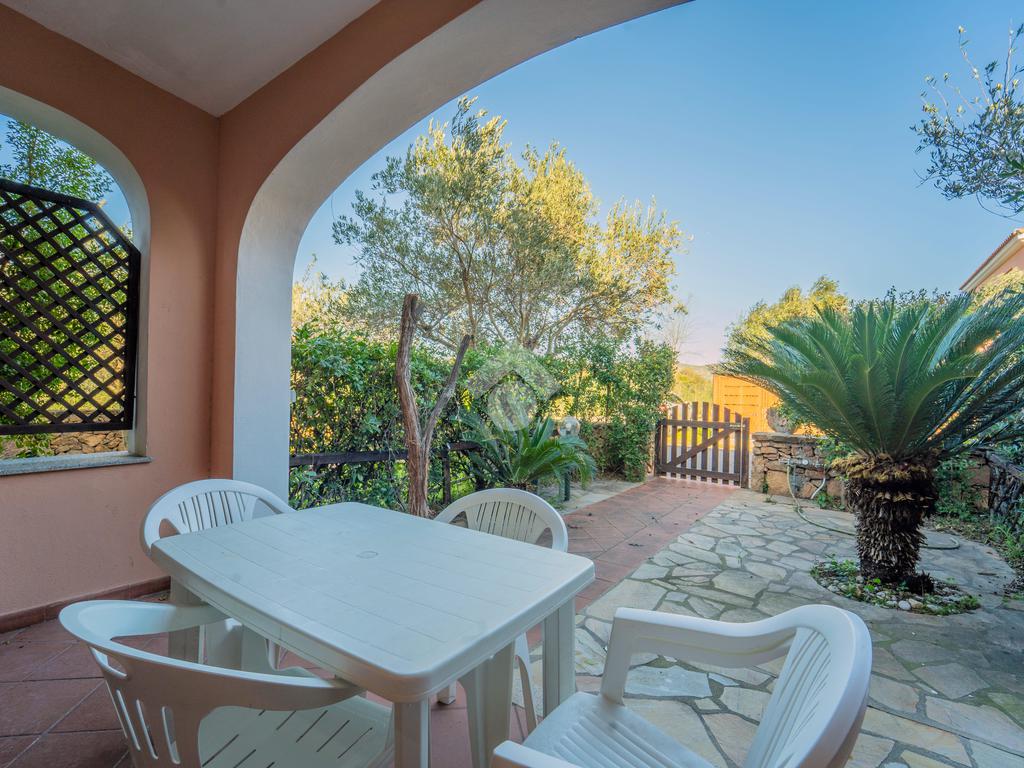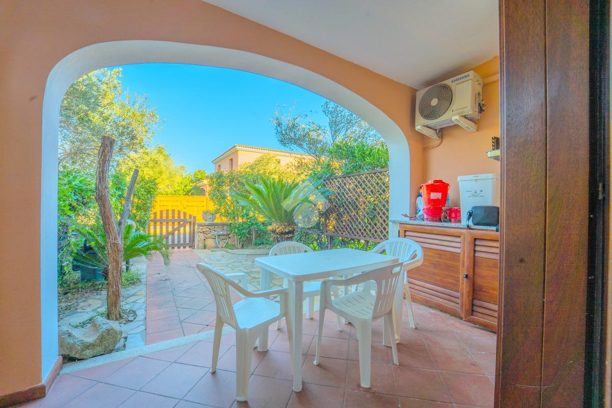 Una veranda coperta completa lo spazio esterno, spazio utilizzabile per mangiare all'aria aperta durante la gran parte dell'anno, data la lunga bella stagione che caratterizza la Sardegna.