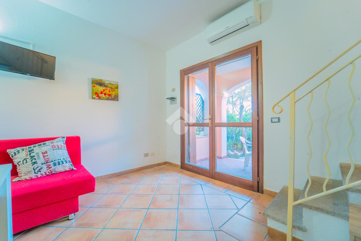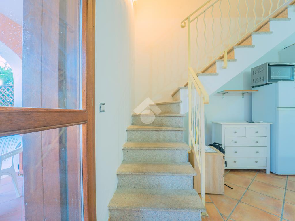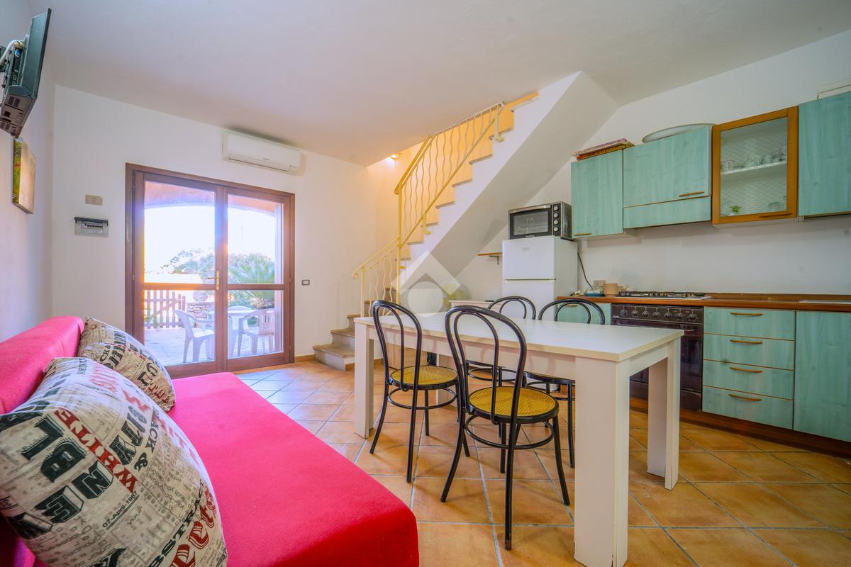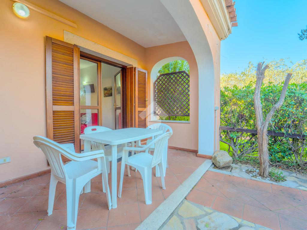Una veranda coperta completa lo spazio esterno, spazio utilizzabile per mangiare all'aria aperta durante la gran parte dell'anno, data la lunga bella stagione che caratterizza la Sardegna.