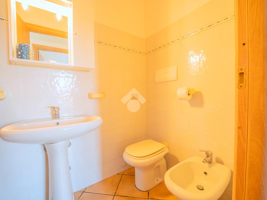 La villetta a schiera oggetto di vendita, presenta un ingresso indipendente direttamente su strada e si apre su un vialetto privato in parte piastrellato con basolato tipico locale ed in parte adibito a prato verde e piantumato con alberi di facile gestione.