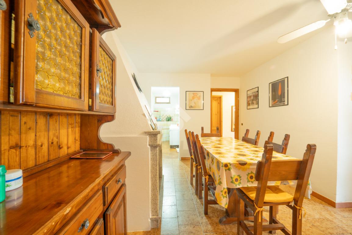 Una terrazza coperta e vivibile ci accompagna all'interno della proprietà dove troviamo un'ampia sala attualmente arredata con divani e tavolo; l'angolo cottura risulta separato, ottimo per chi gradisce i due ambienti ben divisi. La sala è corredata dal caminetto, perfetto per l'inverno ma sostituibile con fonti di calore più facilmente gestibili come la stufa a pellet.